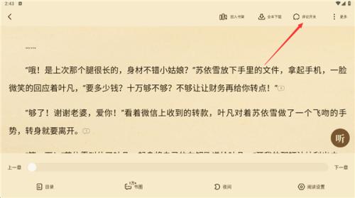 2、下面功能滑到最右边,点章末推荐开关,可以开启哦