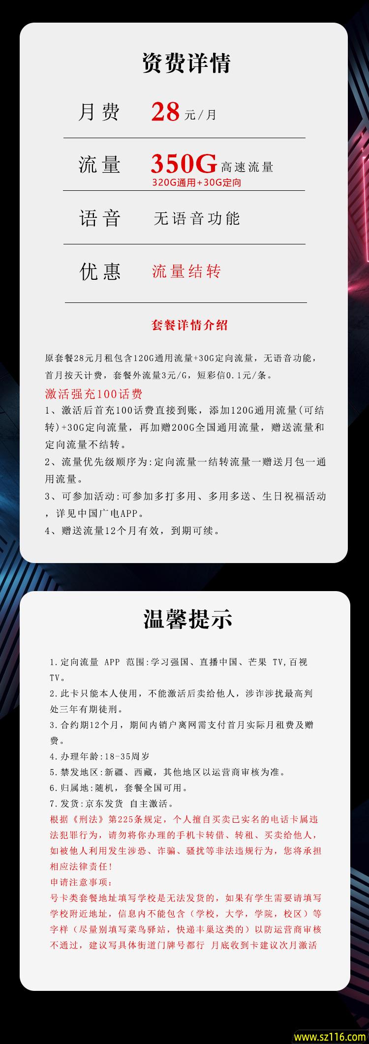 温馨提示:号卡资料可能会随运营商政策而变动,具体资料以下单页为准,此页面仅供展示,非下单页面。