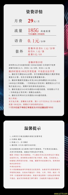 温馨提示:号卡资料可能会随运营商政策而变动,具体资料以下单页为准,此页面仅供展示,非下单页面。