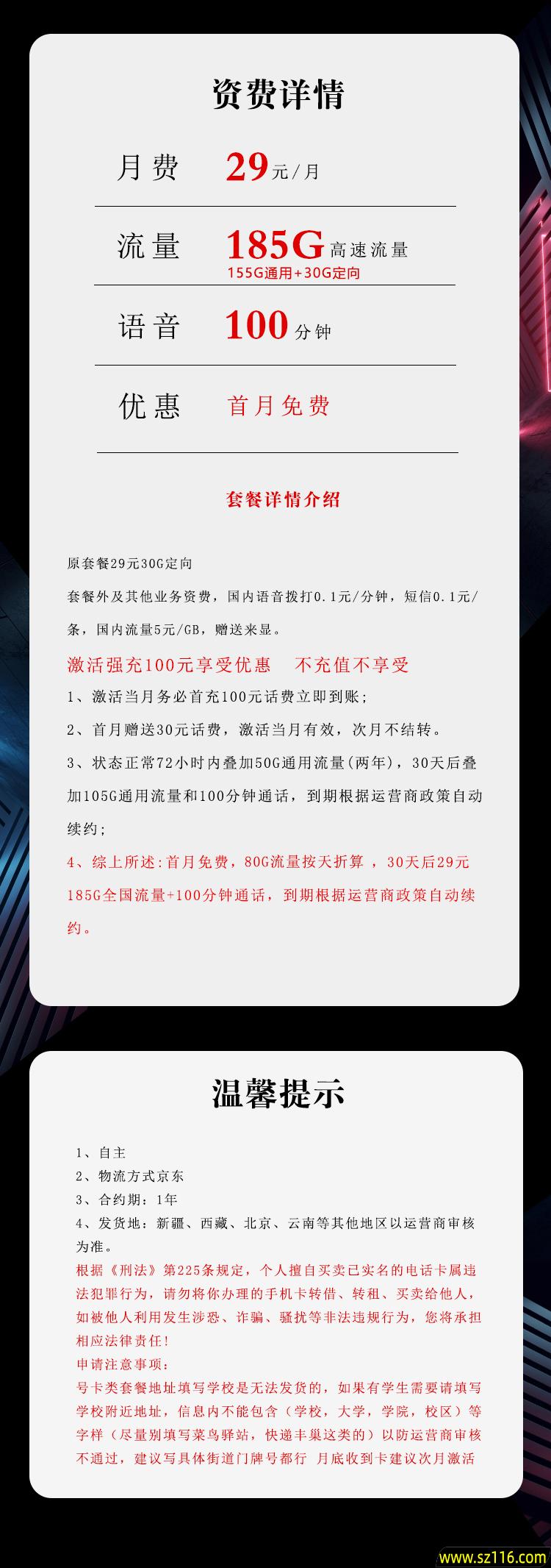温馨提示:号卡资料可能会随运营商政策而变动,具体资料以下单页为准,此页面仅供展示,非下单页面。