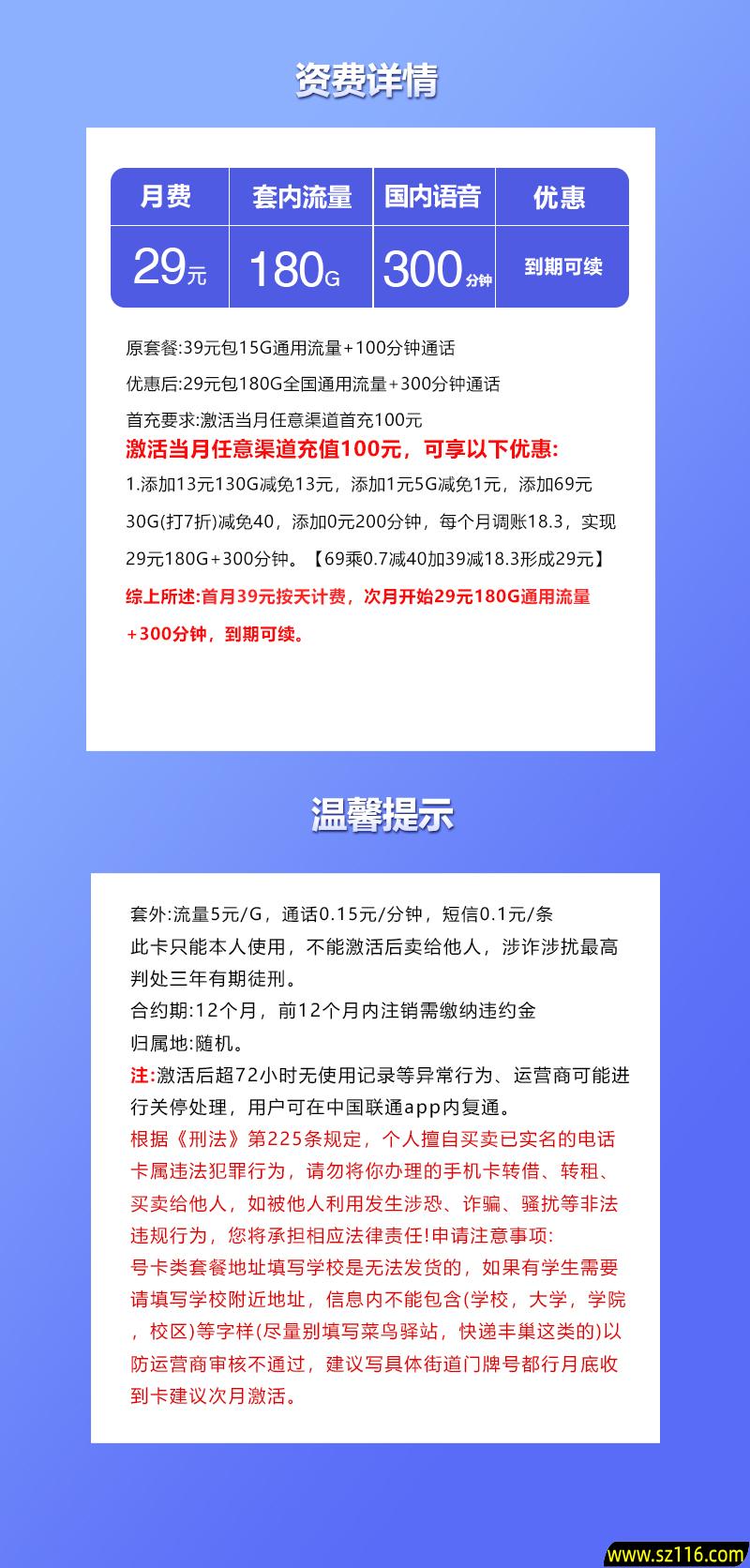 温馨提示:号卡资料可能会随运营商政策而变动,具体资料以下单页为准,此页面仅供展示,非下单页面。