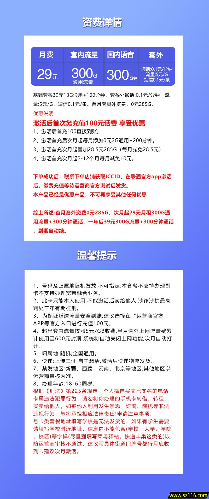 温馨提示:号卡资料可能会随运营商政策而变动,具体资料以下单页为准,此页面仅供展示,非下单页面。
