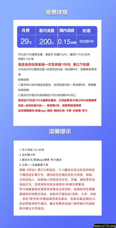 温馨提示:号卡资料可能会随运营商政策而变动,具体资料以下单页为准,此页面仅供展示,非下单页面。