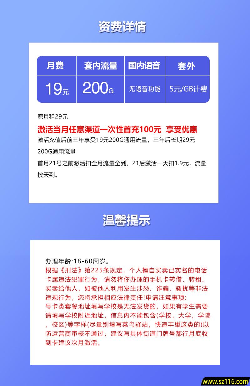 温馨提示:号卡资料可能会随运营商政策而变动,具体资料以下单页为准,此页面仅供展示,非下单页面。