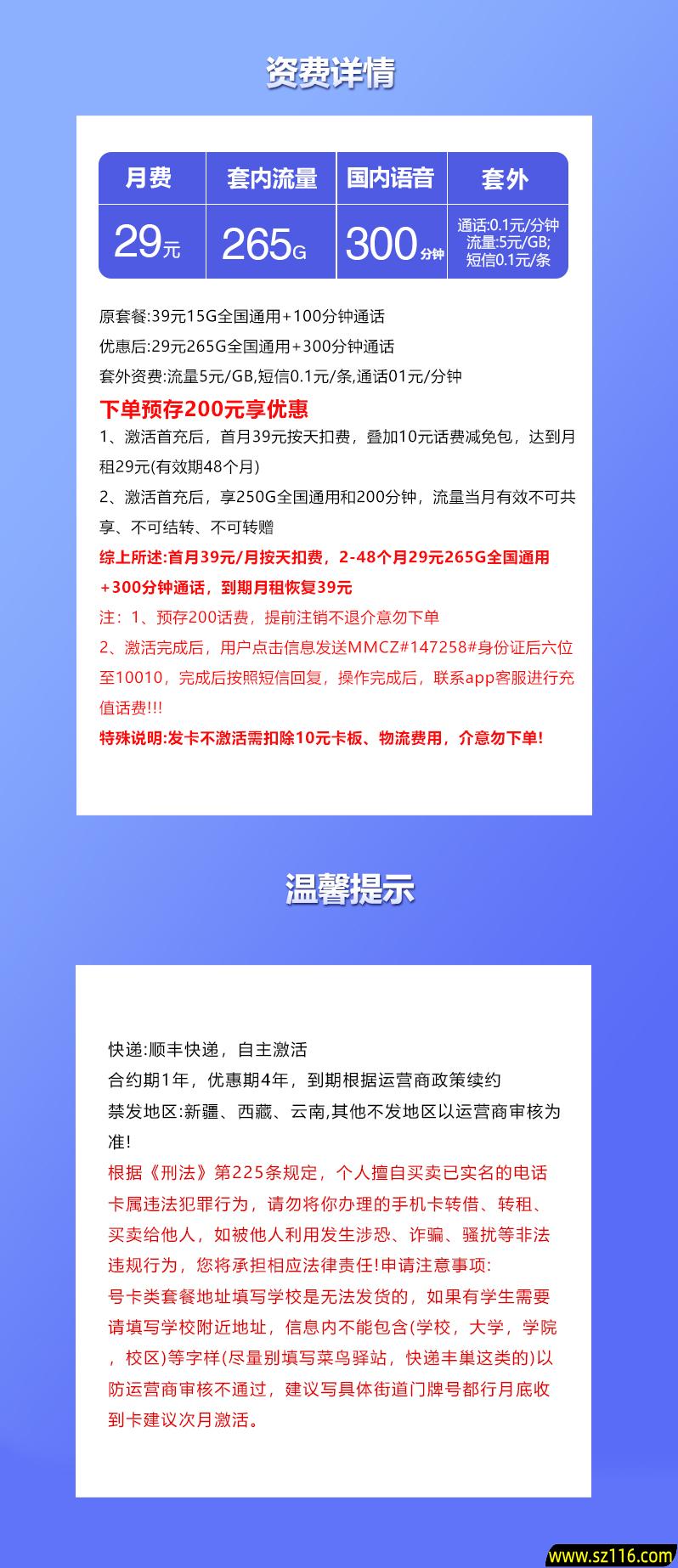 温馨提示:号卡资料可能会随运营商政策而变动,具体资料以下单页为准,此页面仅供展示,非下单页面。