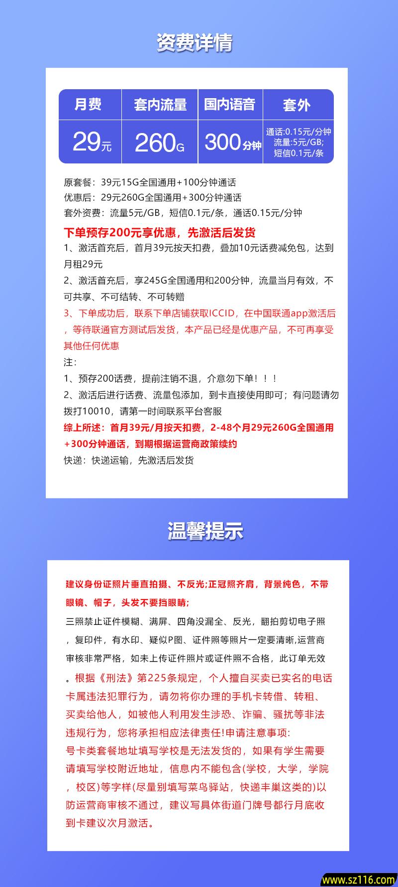 温馨提示:号卡资料可能会随运营商政策而变动,具体资料以下单页为准,此页面仅供展示,非下单页面。