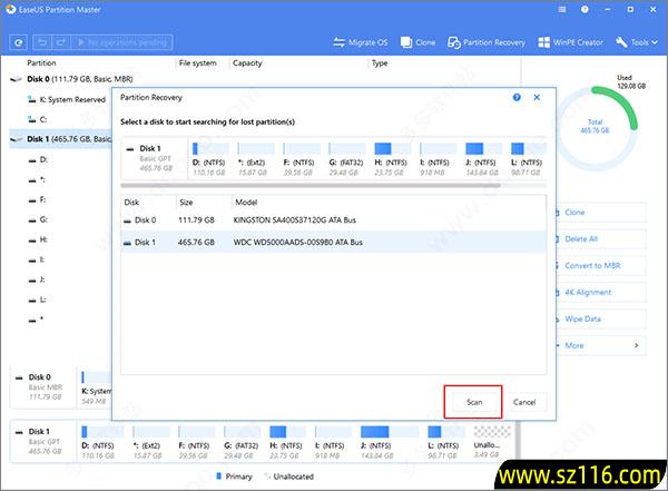 该程序将使用“快速扫描”和“深度扫描”两种模式扫描整个磁盘,以查找所有丢失的分区和数据。