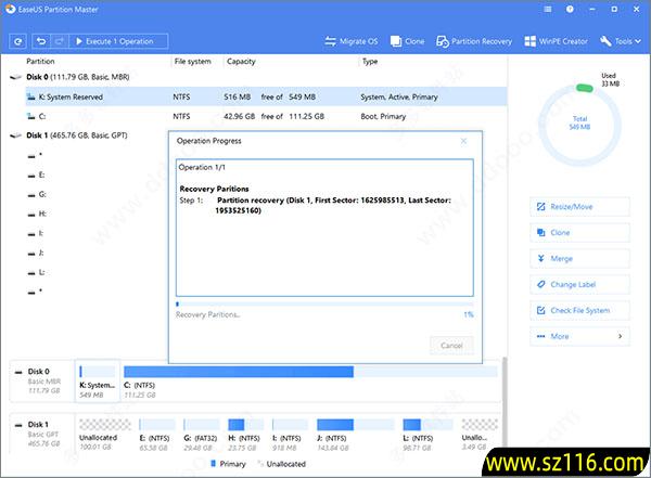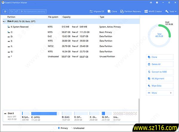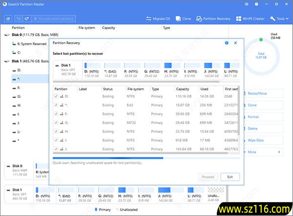 除了分区恢复外,EaseUS Partition Master还提供了分区管理器以及磁盘和分区复制功能,它是解决您的MBR和GPT磁盘及分区问题的完整解决方案。