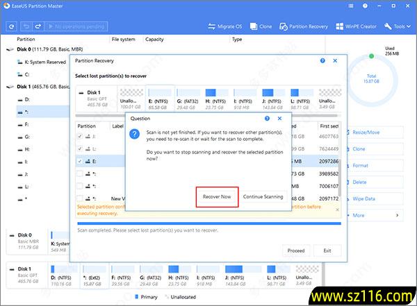 如果快速扫描找不到丢失的分区,请耐心等待,直到深度扫描完成。