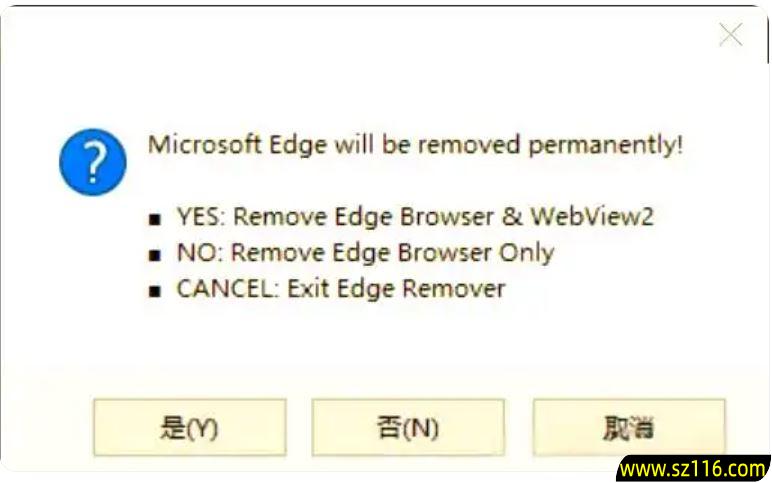 点击[否]:仅移除 Edge 浏览器