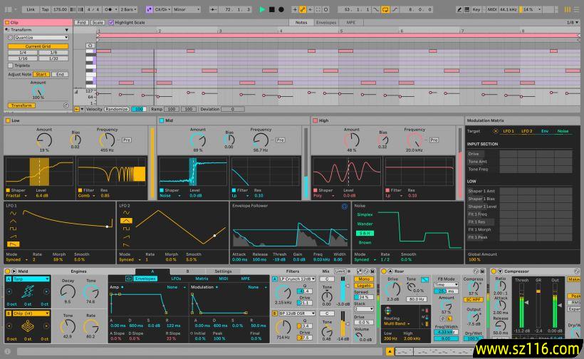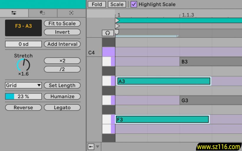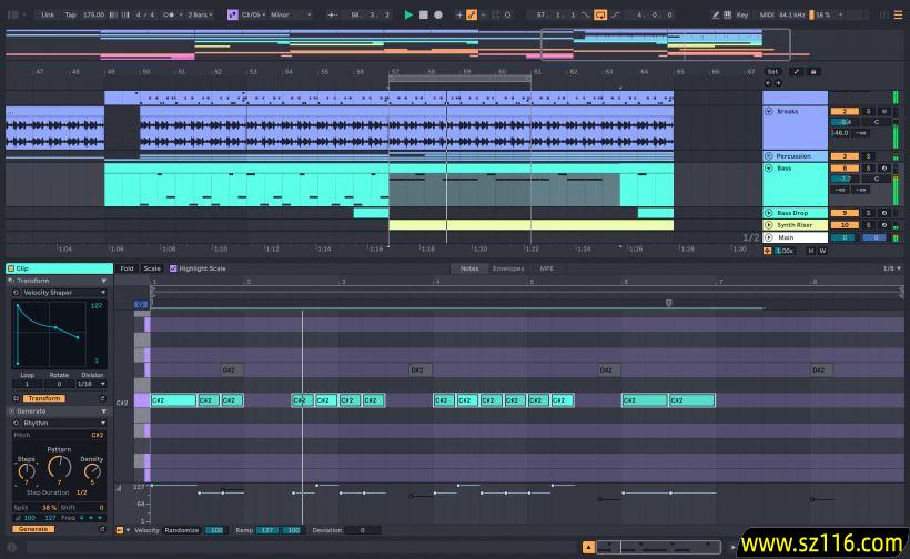 MIDI 变形和生成工具 – 为你的 MIDI Clips 添加各种各样的变化。添加装饰音,连接音符与和弦,模拟吉他扫弦,或使用生成算法创造旋律、节奏与和弦,详细的参数让你能轻松地使用这些工具。