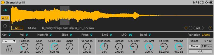 Granulator III –由 Robert Henke 开发的最新一代粒子合成器,支持 MPE,使你能使用音符弯音、颤音、滑音等技法控制参数。除此之外,你还可以实时捕捉音频,并立即开始调制。