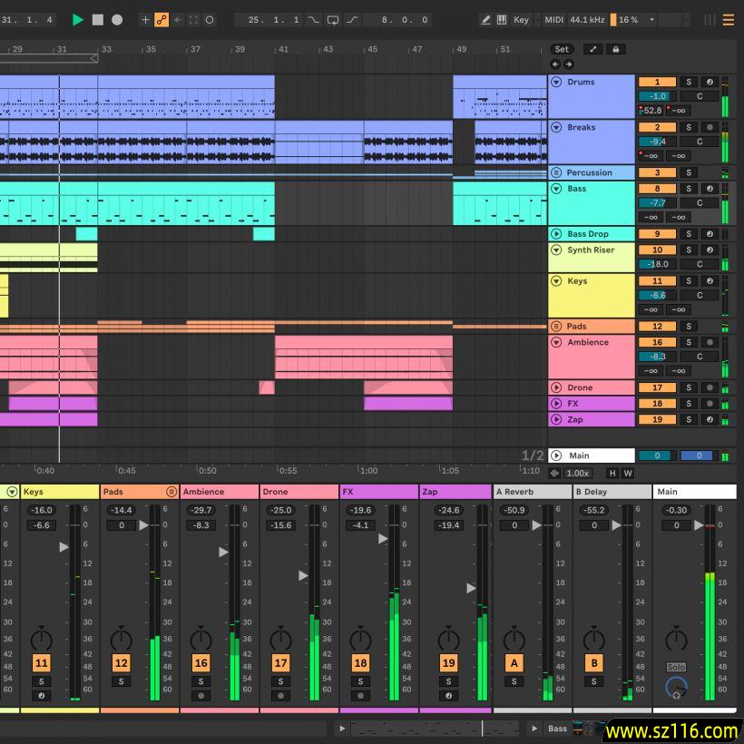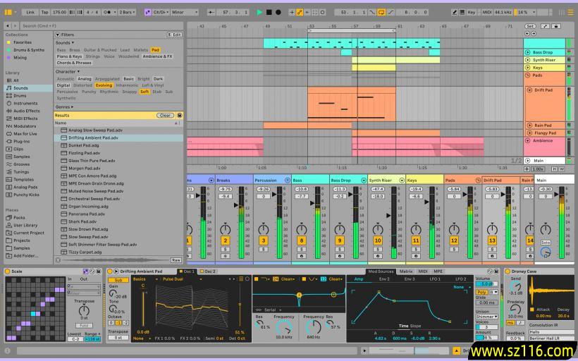 界面优化 – Live 12 的界面移除了许多视觉干扰,设计更加现代化,让你能够更好地专注于音乐创作。