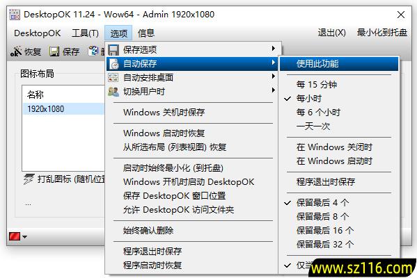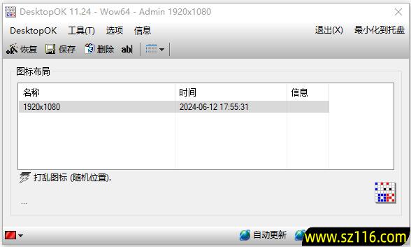 4.便捷的操作:DesktopOK在任务栏中有一个小图标,用户可以通过右键单击该图标来进行保存、恢复、删除等操作。