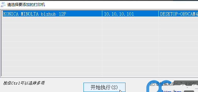选择要添加的网络共享打印机,本例为 KONICA MINOLTA(柯尼卡美能达) bizhub 12P,点击开始执行