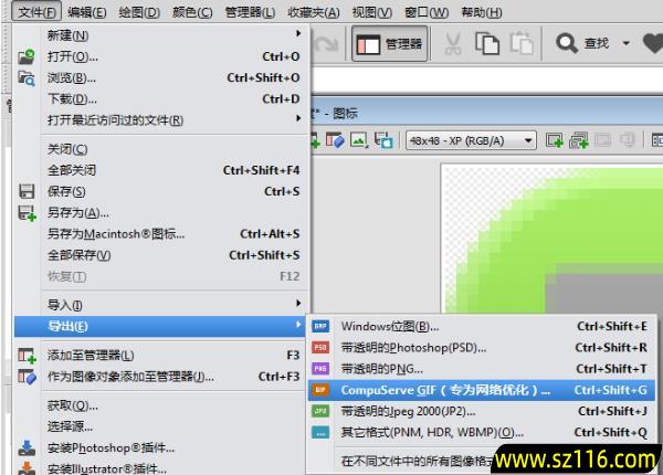 7.那么这时你要选择“文件-导出-Compuserve GIF”出现下列对话框