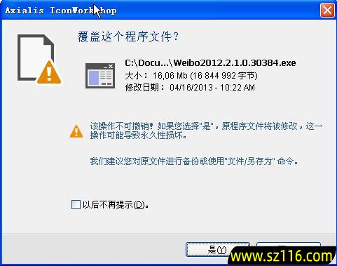 7.保存修改应用程序图标制作成果,点击“文件”-“保存”(或按快捷键Ctrl+S),在如下窗口点击“是”,选择覆盖此程序文件,修改应用程序图标顺利完成