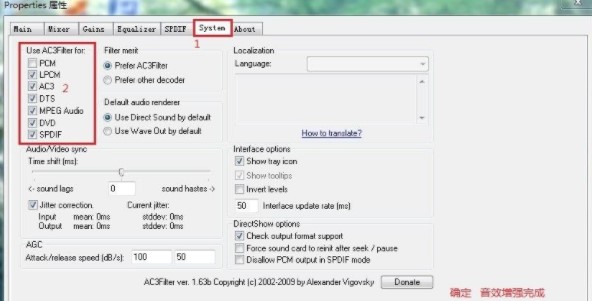 现在开始音效增强---根据图片操作(值得震撼)在确保音质保真的基础上,音效增强,让我们播放电影超爽