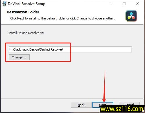14、修改路径地址中的第一个字符C可更改安装位置(如:把C改为H,软件将安装到H盘),点击【Next】。