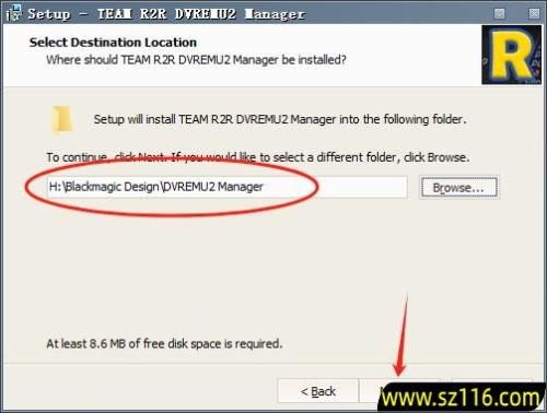 7、修改路径地址中的第一个字符C可更改安装位置(如:把C改为H,软件将安装到H盘),点击【Next】。