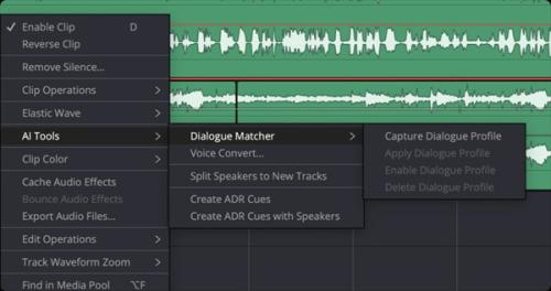自动的为视频中的对白匹配音调、电平和房间环境混响。让两段完全不同的音频对白,实现音频一致性。