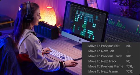 新的键盘快捷键剪辑选择模式能解锁之前Fairlight Audio Editor上所具备的功能。这类上下文敏感工具能让剪辑变得极为快速!如果您想要切换到Fairlight,这些直观熟悉的工具也能帮助您快速上手开始工作。
