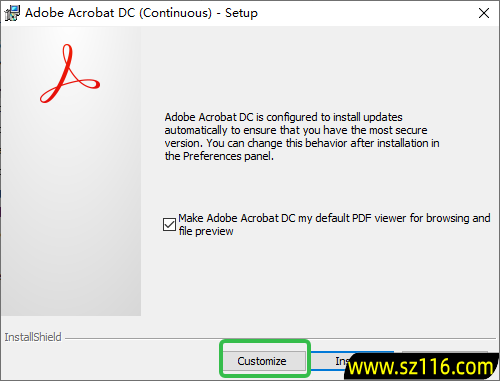 3、来到安装向导,点击【Customize】。