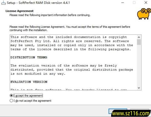 1.下载好数据包后,直接解压用鼠标双击“ramdisk_setup.exe”打开进入安装向导,选择同意隐私协议,点击“next”进入下一步
