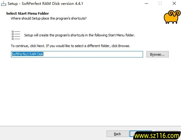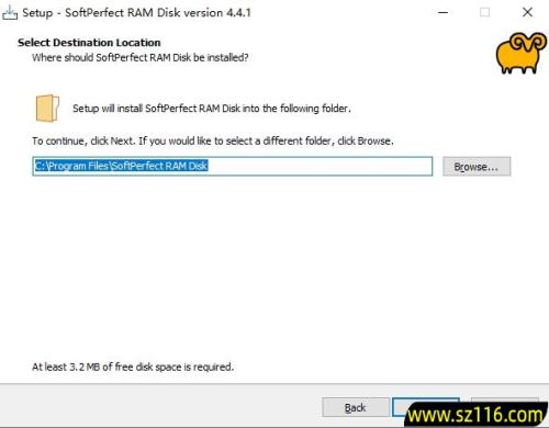 2.选择安装位置,默认路径为“C:\Program Files\SoftPerfect RAM Disk”点击“browse”可更改目录