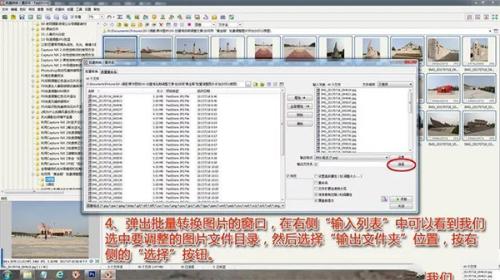 4、弹出批量转换图片的窗口,在右侧“输入列表”中可以看到我们选中要调整的图片文件目录,然后选择“输出文件夹”位置,按右侧的“选择”按钮。