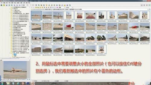 2、用鼠标选中需要调整大小的全部照片(也可以按住Crtl键分别选择),我们看到被选中的照片有个蓝色的边框。