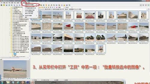 3、从菜单栏中打开“工具”中第一项,“批量转换选中的图像”。