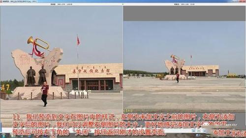 11、我们预览到文字在图片中的样式,左侧为未加文字之前的图片,右侧为添加文字后的图片,我们可以调整右侧图片的大小,更好地感觉添加文字后的效果。预览后可按右下角的“关闭”按钮返回刚才的设置页面。