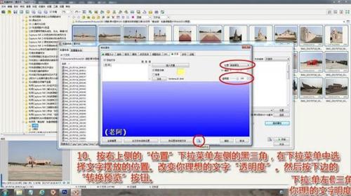 10、按右上侧的“位置”下来菜单左侧的黑三角,在下拉菜单中选择文字摆放的位置。改变你理想的文字“透明度”。然后按下边的“转换预览”按钮。