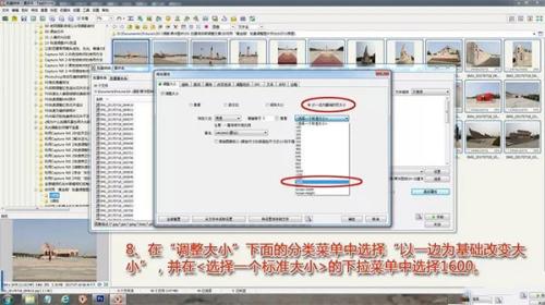 8、在“调整大小”下面的分类菜单中选择“以一边为基础改变大小”,并在<选择一个标准大小>的下拉菜单中选择1600。