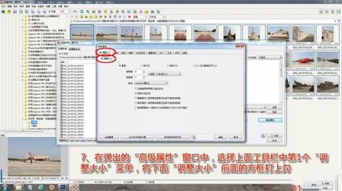 7、在弹出的“高级属性”窗口中,选择上面工具栏中第1个“调整大小”菜单,将下面“调整大小”前面的方框打上勾。