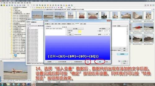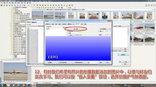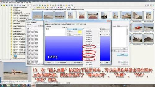 12、有时我们希望将照片的拍摄数据添加到图片中,以便与好友们交流学习。我们可以按“插入变量”按钮,选择拍摄的各种数据。