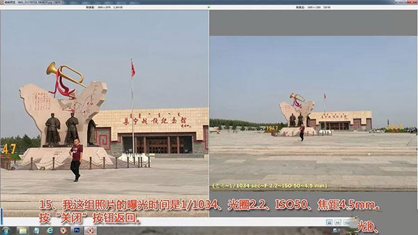 15、我这组照片的曝光时间是1/1034、光圈2.2、ISO50、焦距4.5mm。按“关闭”按钮返回。