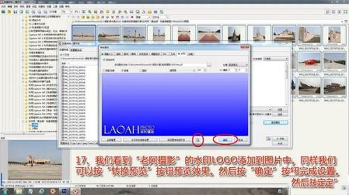 17、我们看到“老阿摄影”的水印LOGO添加到图片中。同样我们可以按“转换预览”按钮预览效果。然后按“确定”按钮完成设置。