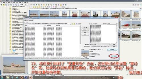 19、现在我们回到了“批量转换”页面,这里我们还能设置“重命名”等。如果没有其他需要设置的,我们就可以按“开始”按钮,开始批量转换调整。