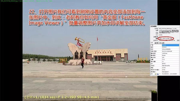 22、打开图片我们可看到刚刚设置的内容全部添加到每一张图片中。到此:老阿教你如何用“黄金眼(FastStone Image Viewer)”批量调整图片并加水印讲解结束。