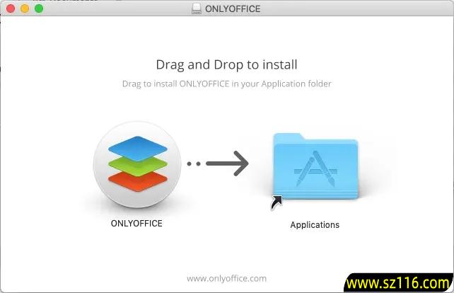 3、 将 ONLYOFFICE 应用拖动到应用文件夹中,进行安装。