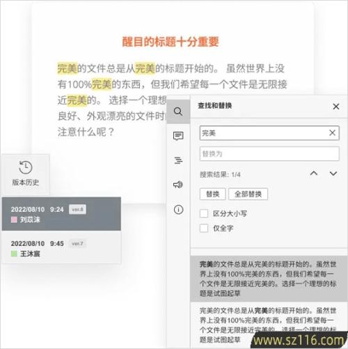 分析您的文档:查看包含或不包含空格的字数、段落和字符。搜索单词或短语,使用查找并替换功能将其替换为新单词或短语。查看版本历史记录,只需单击即可选择并恢复任何以前的版本。