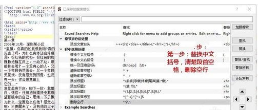 7、为章节设定名称。左手Test部分由章节的XHTML文件都选上,查找控制台的选项“循环匹配”取消勾选,模式中的点取“选择的文件”,点击右面替换所有。