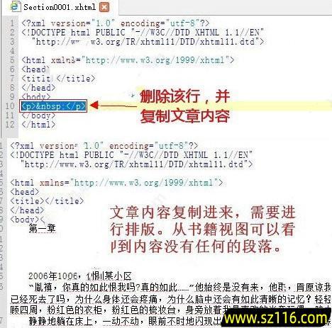 2、检查TXT的内容,是否有分章节,如果没有,那么自己添加章节。如果是数字开头的章节,改为第*章或者第*节。前后看看是否有序章、后记等。这是为后面进行分段做准备。
