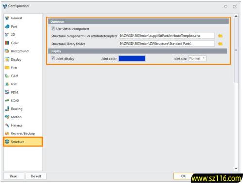 新增结构件配置项,能够设置型材的创建方式、结构件用户属性模板、结构件库以及接头显示等配置。