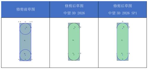 草图修剪功能得到优化,用户对参考外部几何生成的图元进行修剪后,其他图元与之相关的约束将不再被修剪,即草图修剪前后将保持原来的约束状态。
