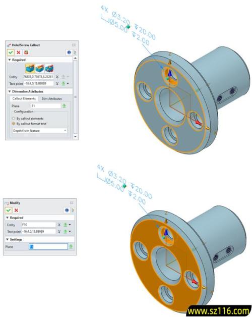 PMI的孔标注新增放置平面,支持将孔标注放置在特定平面上。右键选择孔标注,修改其放置平面。