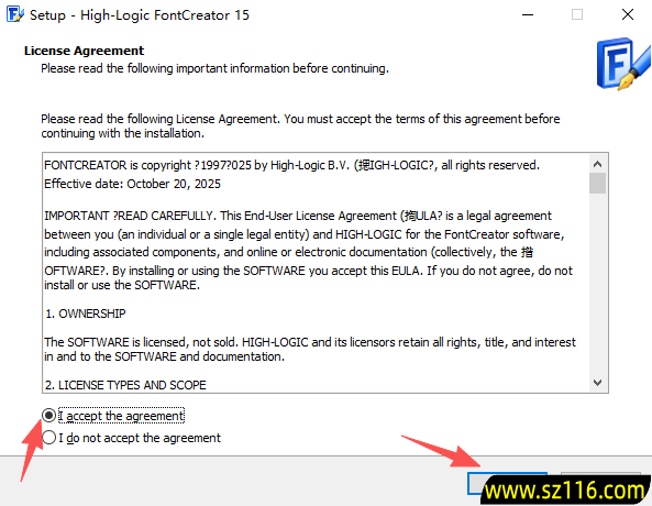 1、在本站下载并解压,双击运行安装程序,进入安装向导,勾选我同意许可协议,点击“Next”;