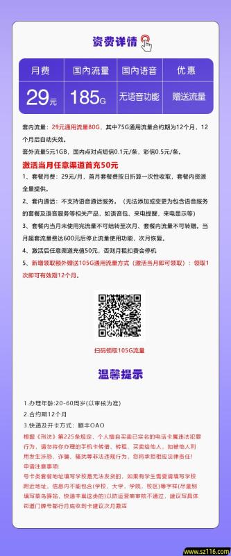 温馨提示:号卡资料可能会随运营商政策而变动,具体资料以下单页为准,此页面仅供展示,非下单页面。